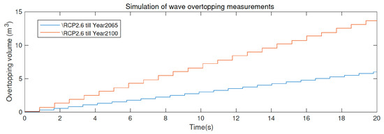 Figure 11. Overtopping volume over the double-dike defence structure under the RCP2.6 scenario.