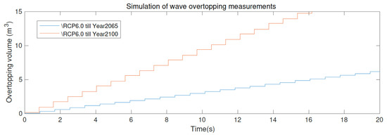 Figure 13. Overtopping volume over the double-dike defence structure under the RCP6.0 scenario.