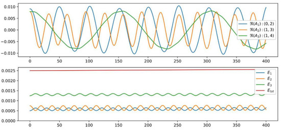 with , and it can be turned into (5) by putting . Moreover, as demonstrated in [13] on page 136, in some well-defined sense, the system (8) can be regarded as an energy-conserving system where the total energy of the detuned system (8) oscillates periodically with frequency , again at the specified time scale. Here, are energies of each distinct mode of the triad, .