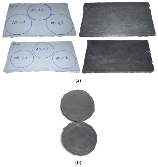 (a) Sealant rectangular sheets. (b) Specimens for hydrogen permeability test.