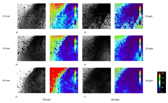 - Roth, A.; Frantz, D.; Chaze, W.; Corber, A.; Berrocal, E. High-speed imaging database of water jet disintegration Part I: Quantitative imaging using liquid laser-induced fluorescence. Int. J. Multiph. Flow 2021, 145, 103641. [Google Scholar] [CrossRef]