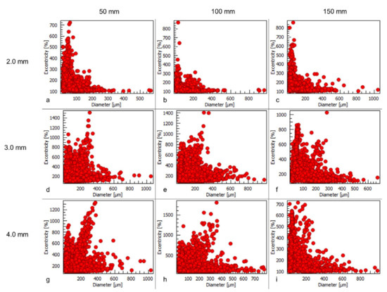 3.3. Drop Size Distribution (DSD) and Excentricity Plots