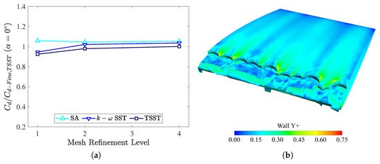 - Spalart, P.; Allmaras, S. A one-equation turbulence model for aerodynamic flows. In Proceedings of the 30th Aerospace Sciences Meeting and Exhibit, Reno, NV, USA, 6–9 January 1992; p. 439. [Google Scholar] [CrossRef]