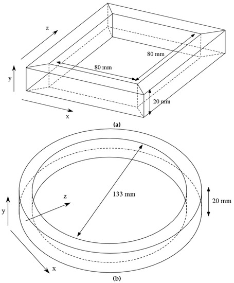 Three-dimensional sketch of the fluid container delimited by sidewalls of Perspex: (a) square container, (b) cylindrical container.