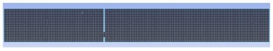 After the model is established, Mech is used for meshing. The roadway is mainly composed of tetrahedral mixed grid units, and the door wall is made of hexahedral grid units. The three-dimensional roadway grid is divided in Figure 10. Five boundary layers are set on the impermeable walls. The number of grid units divided is, for the wide door roadway model, 2,521,485, and for the personnel door roadway model, 2,619,591; the grid quality is good.