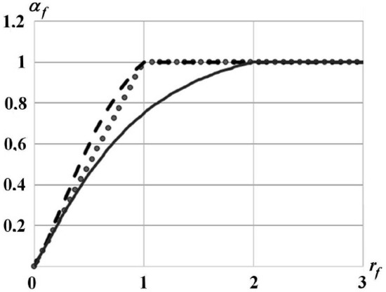 The values correspond to the scheme of the first order of accuracy, and to the scheme of the second order of accuracy. You see that that “strict” limiter function is the Venkatakrishnan limiter that makes transition to the scheme of the second order the latest of all (at ), which will provide high stability and ensure good monotonous property [7,8,38].