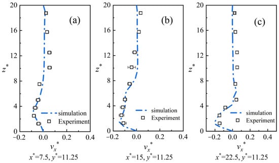 This section compares the simulated and experimental results of air velocity for the roof exhaust condition and measures the computational error for different numbers of grids. Figure 7 shows the comparison of experimental and measured results for different measurement positions with different grid numbers. Table 6 shows the relative errors of the calculation results under different grid numbers.