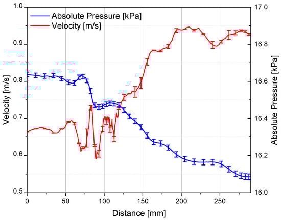 Pressure and velocity sampled on the aorta path-line during the systolic peak.