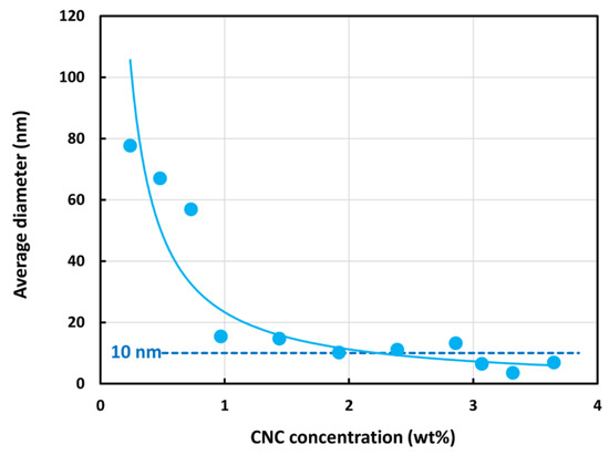 Average hydrodynamic diameter of CNC suspensions as a function of CNC concentration.
