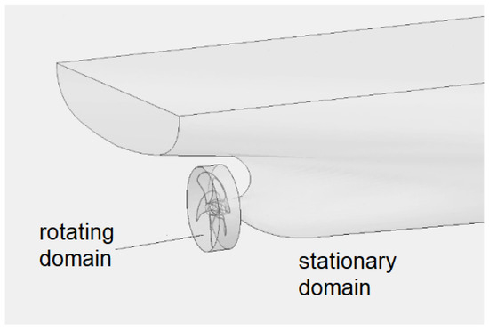 A rotating body was simulated with the explicit method using a computational mesh moving together with the propeller boundaries. With such an approach, a domain near the propeller, in which the rotation took place, was selected, while the rest domain remained motionless (Figure 1).