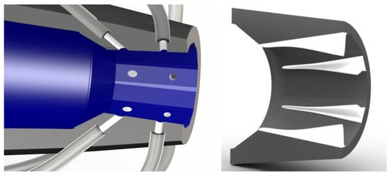 - Kapusta, M.; Powers, R.W.; Morris, P.J.; McLaughlin, D.K. Numerical simulations for supersonic jet noise reduction using fluidic inserts. In Proceedings of the 54th AIAA Aerospace Sciences Meeting, San Diego, CA, USA, 4–8 January 2016; p. 0758. [Google Scholar]