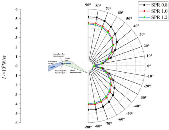 - Luo, Z.X. Study on Aerodynamic Performance and Infrared Radiation Characteristics of Single Expansion Ramp Nozzle with Secondary Flow. Master’s Thesis, Harbin Institute of Technology, Harbin, China, 2019. [Google Scholar]
