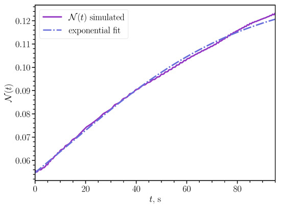where . The time dependence given by this equation and its comparison with the ratio extracted from numerical simulations is demonstrated in Figure 7, revealing a very good approximation accuracy.