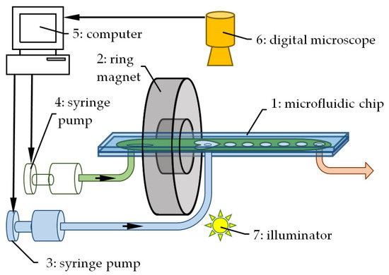 - Pamme, N. Magnetism and microfluidics. Lab Chip 2006, 6, 24–38. [Google Scholar] [CrossRef]