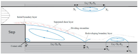 Schema of backward-facing step flow (BFSF) (not to scale).