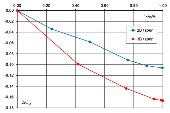 The base drag coefficient will reduce more rapidly with tail length because the base area reduction is greater. Assuming that the base pressure coefficient will increase with reducing the base area ratio as shown in Figure 11, this drag reduction will be enhanced.