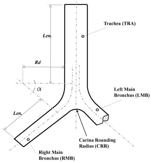 - Martonen, T.; Yang, Y.; Xue, Z. Effects of carinal ridge shapes on lung airstreams. Aerosol Sci. Technol. 1994, 21, 119–136. [Google Scholar] [CrossRef]
