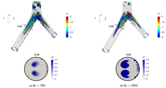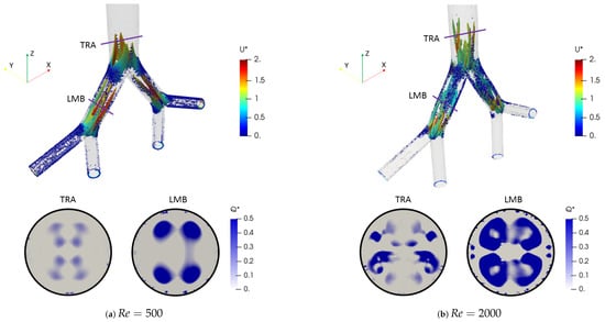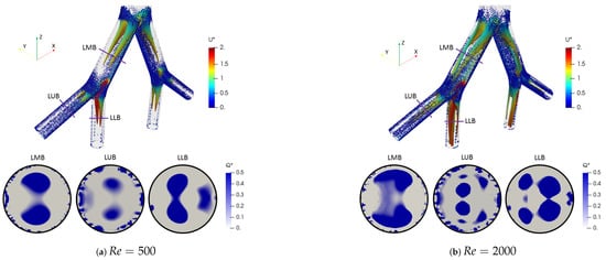 - Zhao, Y.; Lieber, B.B. Steady inspiratory flow in a model symmetric bifurcation. Trans. ASME-K-J. Biomech. Eng. 1994, 116, 488–496. [Google Scholar] [CrossRef]