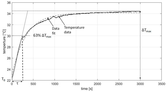 Fitting the time-temperature curve by means of the minimum least squares method using Matlab fitting tool the values of T0, and τ were evaluated. Given the fitting parameters of Equation (1), according to [44], the SLP could be evaluated as: