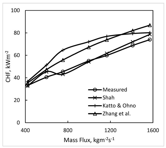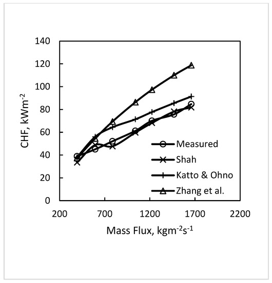 - Shah, M.M. Applicability of general correlations for CHF in conventional tubes to mini/macro channels. Heat Transf. Eng. 2017, 38, 1–10. [Google Scholar] [CrossRef]