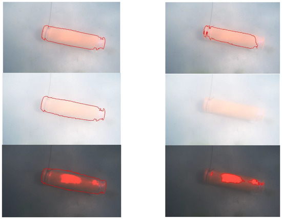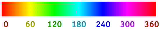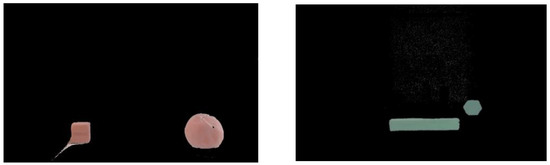 It is when using the mechanism of converting the resulting image into HSV format that the algorithm’s ability to detect color under various light conditions is preserved. When the illumination changes, the histogram of the color gamut of the images practically does not change, which gives us the opportunity to detect objects in various conditions. An example is given Figure 9.