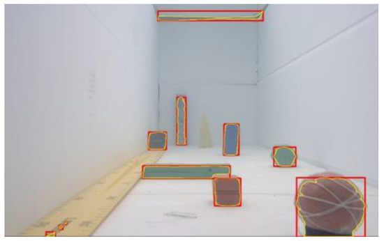 The resulting contours are filtered by a certain color, in which the desired object is colored (Figure 19). If the found areas lack a certain color typical of the object, such areas are ignored and are not used in further processing.