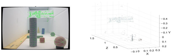 In the obtained area, it is possible to find the object’s 3D point maximum number, using the algorithm for finding 3D points in stereo images (Figure 22). An example of detecting key points in an image and displaying their coordinates on a three-dimensional scene is shown in Figure 23.