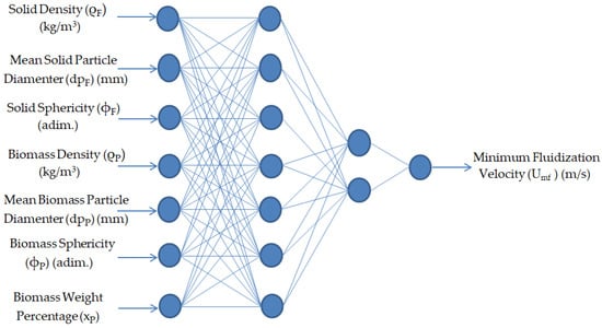 Reyes-Urrutia, A.; Capossio, J.P.; Venier, C.; Torres, E.; Rodriguez, R.; Mazza, G. Artificial Neural Network Prediction of Minimum Fluidization Velocity for Mixtures of Biomass and Inert Solid Particles. Fluids 2023, 8, 128. https://doi.org/10.3390/fluids8040128