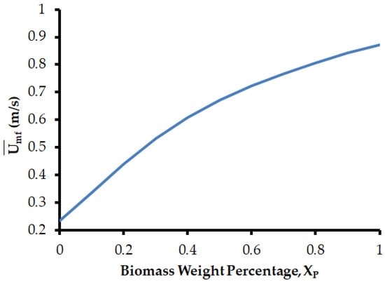 4.3. Effect of the Biomass Fraction on the Minimum Fluidization Velocity Umf