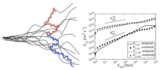- Yan, H.; Lazarian, A. Cosmic-ray propagation: Nonlinear diffusion parallel and perpendicular to mean magnetic field. Astrophys. J. 2008, 673, 942. [Google Scholar] [CrossRef]