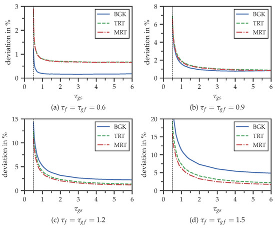 The symmetric relaxation time is related to the fluid viscosity (similar to Equation (8)), while the anti-symmetric relaxation time , given by