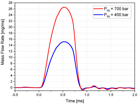 Figure 4 shows the mass flow rate profiles measured by the injector manufacturer.