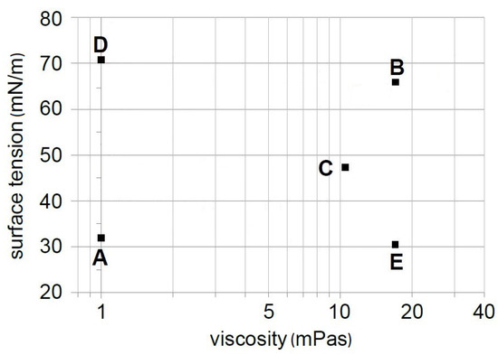 Model liquids with different surface tension and viscosity [11]. The figure is reproduced with permission from the author. The properties of these fluids are provided in Table 1.