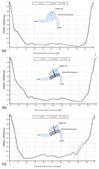 - Xiang, J.; Siddiqui, A.H.; Meng, H. The effect of inlet waveforms on computational hemodynamics of patient-specific intracranial aneurysms. J. Biomech. 2014, 47, 3882–3890. [Google Scholar] [CrossRef] [PubMed]