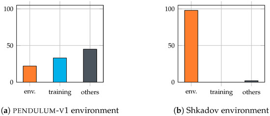 To illustrate the interest of the approach introduced in the previous section, a continuous flow control case from the literature is considered. To present meaningful results, the authors chose an environment for which the CPU cost of the unrolling is significantly higher than the training of the agent (typically around of the total CPU time). To illustrate, the repartition of the CPU time of these two cases is compared with that of the well-known pendulum-v1 environment in Figure 2. This section is devoted to the description of the cases, while the corresponding results are shown in Section 4.