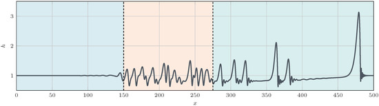 where and W are the Reynolds and the Weber numbers, respectively, defined on the flat-film thickness and the flat-film average velocity [30]. The system (1) is solved on a 1D domain of length L, with the following initial and boundary conditions: