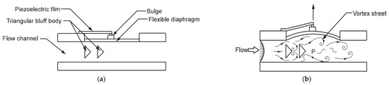 - Peng, J.; Fu, X.; Chen, Y. Flow measurement by a new type vortex flowmeter of dual triangulate bluff body. Sens. Actuators A Phys. 2004, 115, 53–59. [Google Scholar] [CrossRef]