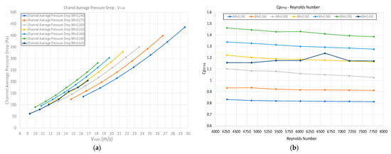 - The channel pressure drop (Δpdrop) increases with the square of inlet velocity for all values of BR. For the same inlet velocity, the pressure drop increases with BR. As expected, an increase in pressure amplitude causes an increase in pressure drop.