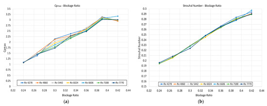 4.1. Effect of Reynolds Number and Blockage Ratio
