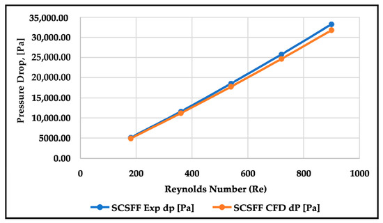 Comparison of CFD and Experiment pressure drop for 2 × 2 SCSFF.