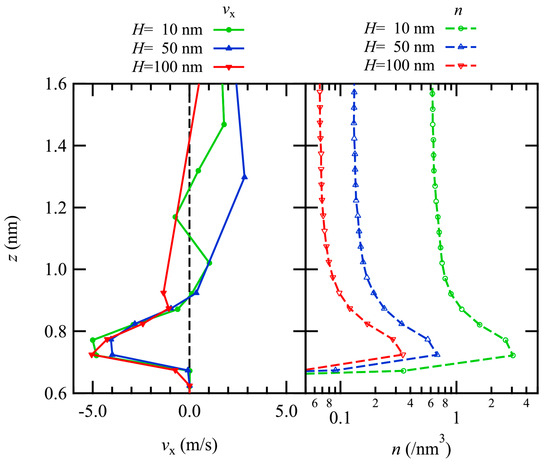 - Prabha, S.K.; Sathian, S.P. Molecular-dynamics study of Poiseuille flow in a nanochannel and calculation of energy and momentum accommodation coefficients. Phys. Rev. E 2012, 85, 041201. [Google Scholar] [CrossRef]