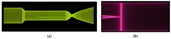 (a) Numerical grid for thruster internal flow; (b) numerical grid for fluid volume [8].