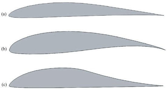 Propulsion airfoils: airfoil 1 (a), airfoil (b), airfoil 3 (c).