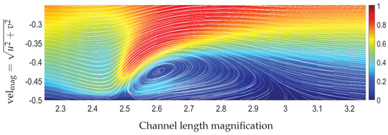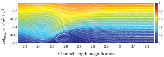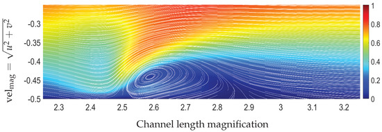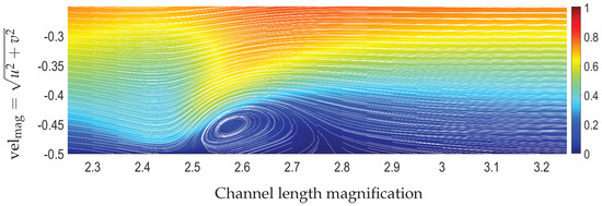 From a numerical perspective, the magnetization terms that enter the governing equations due to the principles of FHD constitute a “source term”, which locally is of a greater order of magnitude than the other terms and gives rise to extended disturbances in the flow field, such as the formation of vortices. This could lead to a stiff numerical problem to solve. Thus, particularly for high values of the magnetic parameter combined with high-gradient magnetic fields, the calculation of the numerical solution is not a trivial task.