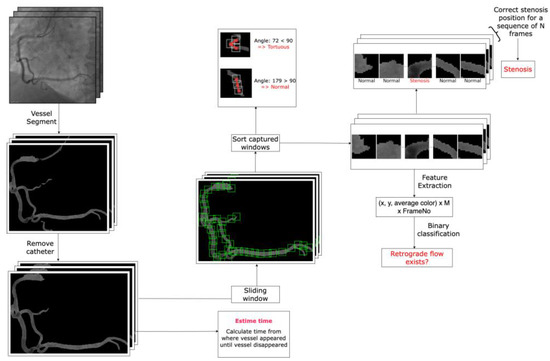 Artificial intelligence analysis: Analysis of coronary angiographic images by artificial intelligence (AI) is very challenging [11,12,13]. In this study, there were four key challenges to be addressed: stenosis detection, retrograde flow detection, estimation of photosensitive flow time, and detection of kinked blood vessels.