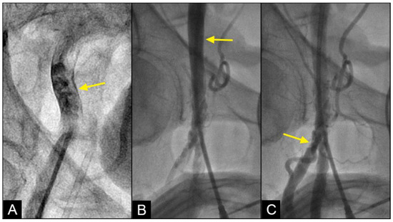 In pumps and pipes, the principal mechanism by which turbulence causes damage is through the generation of fluid-induced vibrations, which lead to mechanical stress and material fatigue. Such stresses can compromise the structural integrity of the pipe, increasing the likelihood of failure, particularly at stress-concentration points such as fittings, valves, and bends. Furthermore, turbulence can contribute to erosion and corrosion of the pipe material, especially where high-velocity flow impacts the pipe surface, resulting in substantial shear stress [21]. In the iliac arteries, disorganized flow can inflict mechanical damage on the arterial wall, particularly at branching points or regions of stenosis where flow velocity is elevated. While disorganized flow is observed at the mid-segment of the iliac artery, lesions are more commonly found at the junction with the superficial femoral artery (SFA) and at the bifurcation with the deep femoral artery (DFA) (Figure 13B,C). This difference is attributed to the iliac artery’s ability to flex, twist, or turn in response to variations in the velocity and pressure of disorganized flow, whereas the distal SFA and PFA, more confined within Scarpa’s triangle, lack the flexibility to accommodate shear stresses. Consequently, the endothelial layers at the bifurcations with the SFA and DFA are exposed to persistent disorganized flow, leading to endothelial injury and possible subsequent development of atherosclerosis. This situation is aggravated further because of substantial mechanical stress from repetitive hip flexion and extension [22].