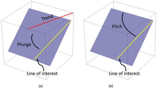 - The pitch of the line refers to the angle between the horizontal line and the line of interest (the yellow line in Figure 5b) within the plane.