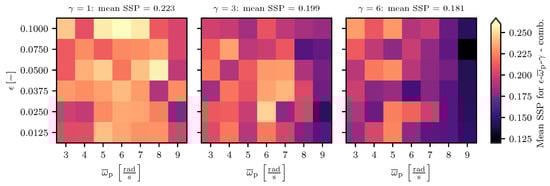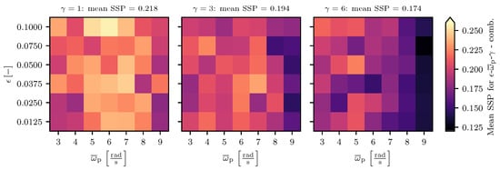 The trends observed in the aforementioned examples were repetitive across all 630 instances in the assimilation task, which is summarized in Figure 8, where the SSP value represents the average error across the real and imaginary parts of each sample. Each cell in the figure corresponds to the mean SSP achieved for all five samples of a specific –– combination, where the determined value was rounded to the nearest integer for this illustration. Notably, the errors tended to decrease as the value increased. The frequency dependence aligned with the inherent preference of PINNs for successive solving from lower to higher frequency components cf. [13] when considering that higher frequencies of the carrier wave resulted in smoother, lower-frequency envelopes , while lower frequencies of the carrier wave resulted in higher-frequency envelopes . Moreover, Figure 8 illustrates a general error increase as the peak enhancement factors decrease or the steepness values slightly increased. As proven by Appendix A.2, these observations were not attributable to the PINN method itself but rather aligned with the model misspecification. Specifically, the NLSE was limited for narrow-band and small-amplitude waves, while the ground truth HOSM data seem to exceed its validity range for increasing and a broader spectra.