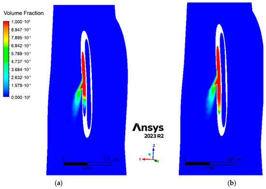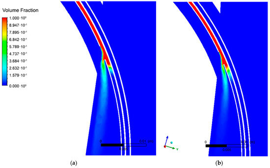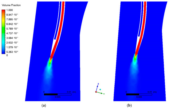 Contours of volumetric fraction of parental nutrition from the medial lumen to the end of the vena cava. (a) Inotropic drug flow rate of 35 mL/h, (b) inotropic drug flow rate of 15 mL/h.