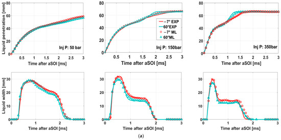 - The developed ANN predicts the liquid/vapor penetration length and width with high accuracy (R2 > 0.99), showing strong agreement with experimental results.